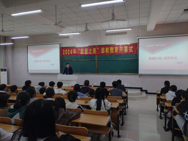 10月23日,大数据产业学院首届“数据之美”启航教育活动开幕式在笃行楼A103隆重举行。本次活动由瑞翼工坊联合数据科学协会共同开展,学院副院长夏日、大数据系主任吴礼斌、中科特瑞区域总监高向楠等出席,开幕式由大数据产业学院赵韩杰老师主持,24级大数据专业学生参加。