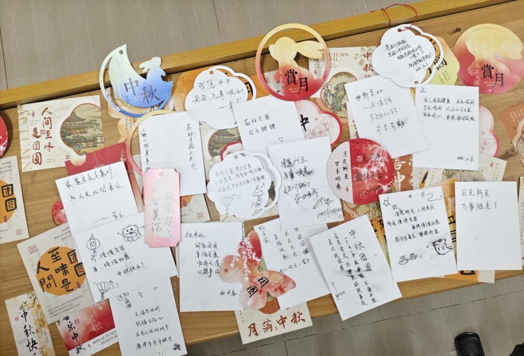 在温馨的氛围中同学们一同回顾了中秋节的起源、传统习俗以及蕴含的文化内涵。从嫦娥奔月的神话故事到阖家赏月、吃月饼的民俗传统,大家在知识的浸润中对这个传统佳节有了更深刻的理解,也进一步激发了对中华传统文化的热爱。活动尾声,学院特意为同学们准备了精美的月饼、丰富的时令水果和定制明信片,鼓励同学们写下对亲人、朋友的思念与祝福,真挚的情感流淌于字里行间,承载着学子们对远方亲友的牵挂。