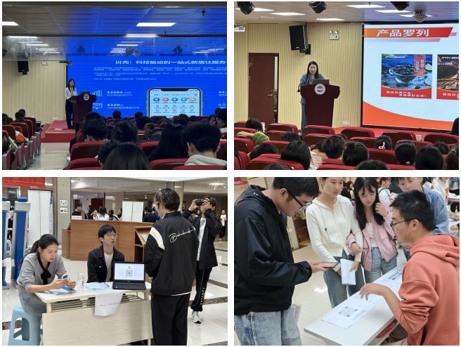 在企业宣讲环节,10多家优质企业代表依次上台,围绕企业发展历程、业务领域、实习岗位需求、培养体系及晋升路径进行详细介绍。参会企业涵盖信息技术、金融管理、数据服务等多个领域,既包括行业龙头企业,也有极具发展潜力的创新型企业,提供的数据分析师、运营助理、财务实习岗、人力资源管理等岗位,与两院专业方向高度契合。