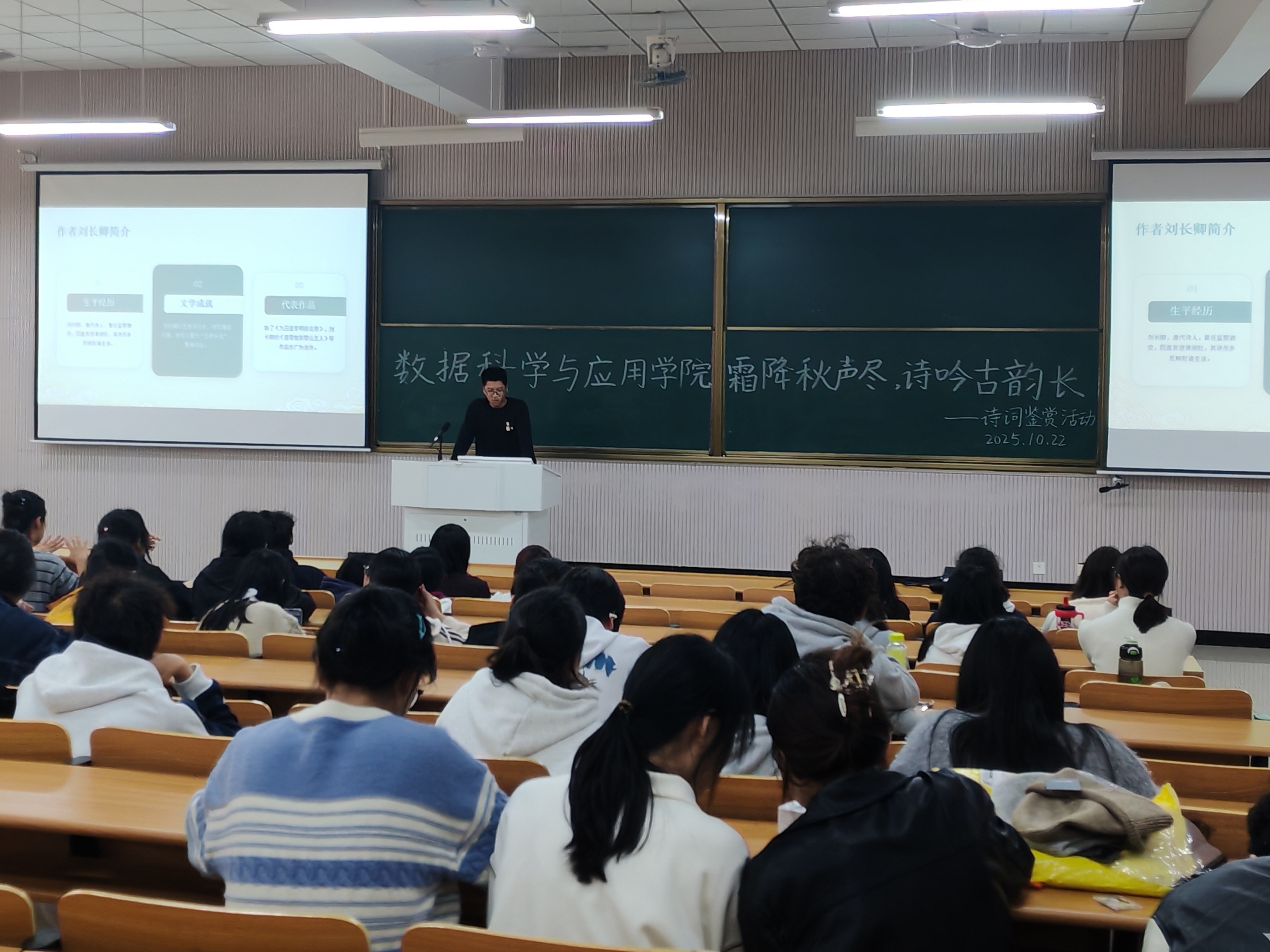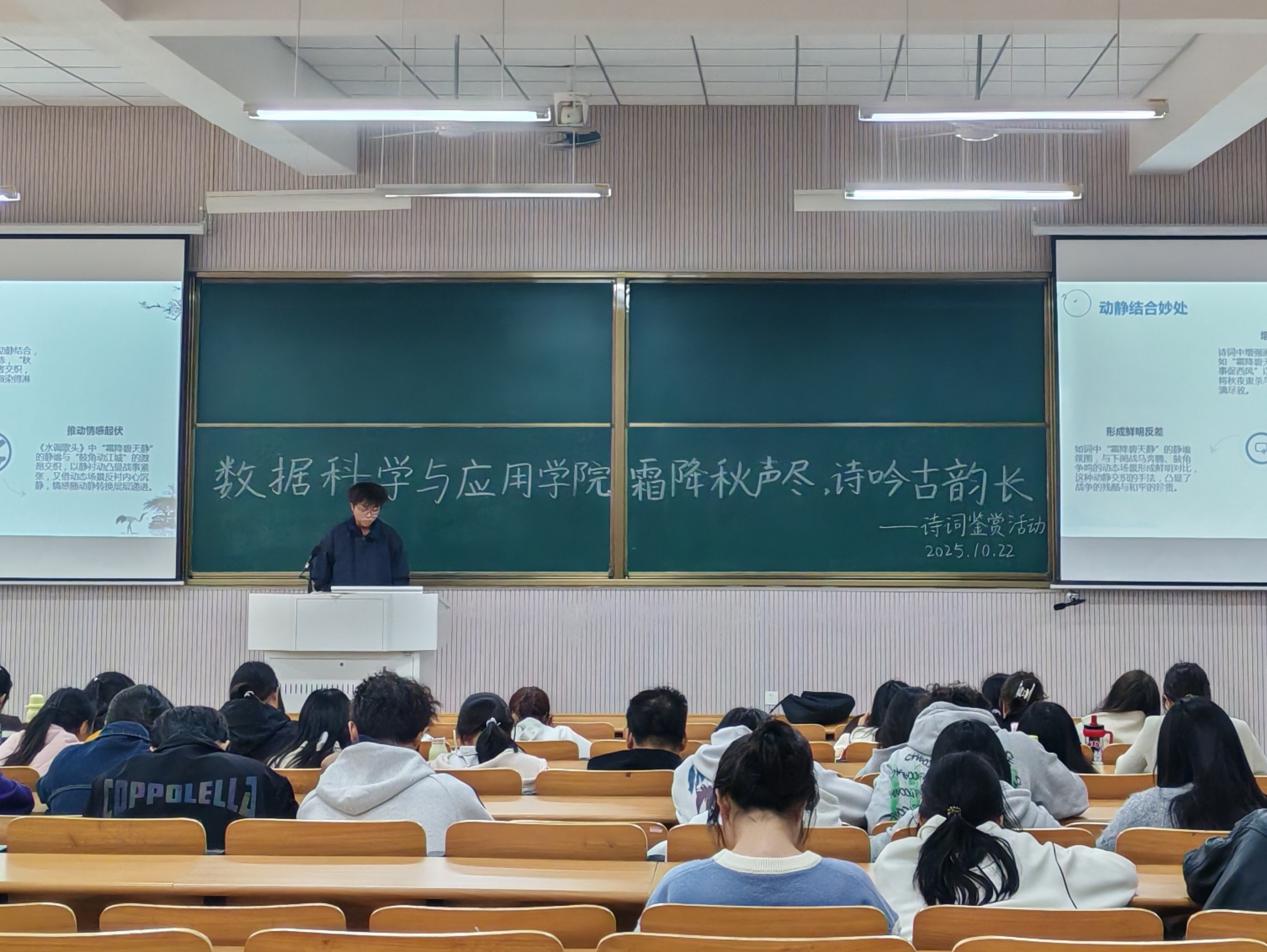 为深入探寻霜降节气的文化内涵,传承中华经典诗词,激发大学生对传统文化的热爱与认同,10月22日,数据科学与应用学院团委于笃行楼A201教室举办了“霜降秋声尽,诗吟古韵长”主题诗词鉴赏会。