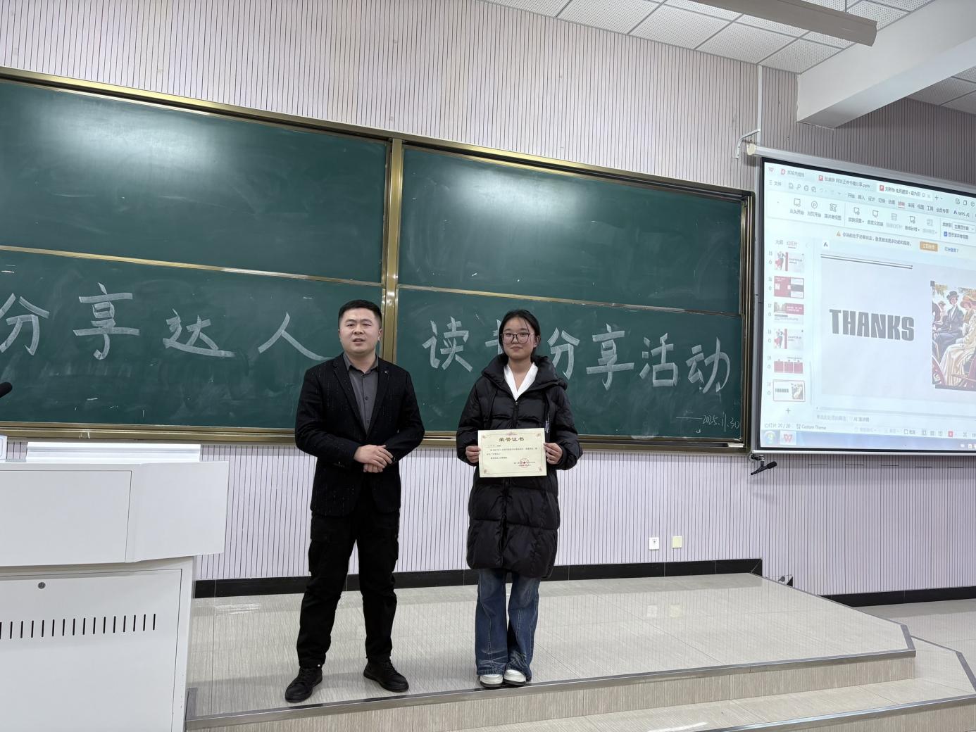 活动结束,评委团从“内容深度、表达流畅度、形式创新性”三大维度现场评分,最终刘新怡同学凭借对《生死疲劳》的独到解读,斩获本月“分享达人”称号。