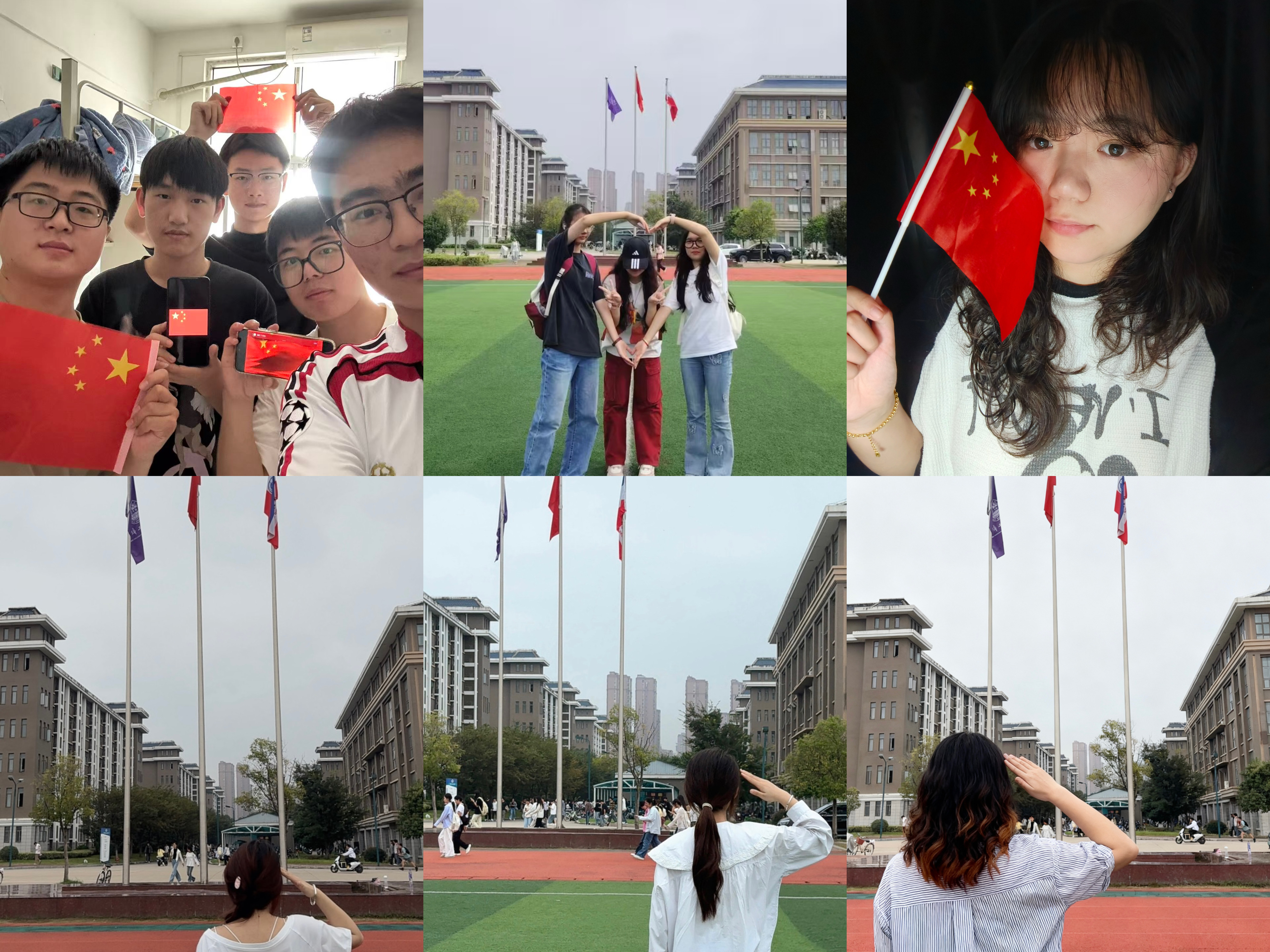 活动开展以来,得到了全院师生的积极响应与热情参与。同学们围绕“与国旗同框,共筑家国赤子心”核心主题,结合学习生活场景、校园地标风光、家乡发展变化等多元视角展开创作。有人在图书馆前手持国旗,让书香与家国情怀交织;有人以教学楼为背景,用青春笑脸搭配鲜红国旗,展现新时代学子的朝气;还有同学回到家乡,在城市地标建筑前与国旗合影,将个人视角融入祖国发展的宏大叙事。每一张照片都构图精巧、情感真挚,不仅彰显了数据科学与应用学院学子积极向上的精神风貌,更传递出“清澈的爱,只为中国”的赤子之心。